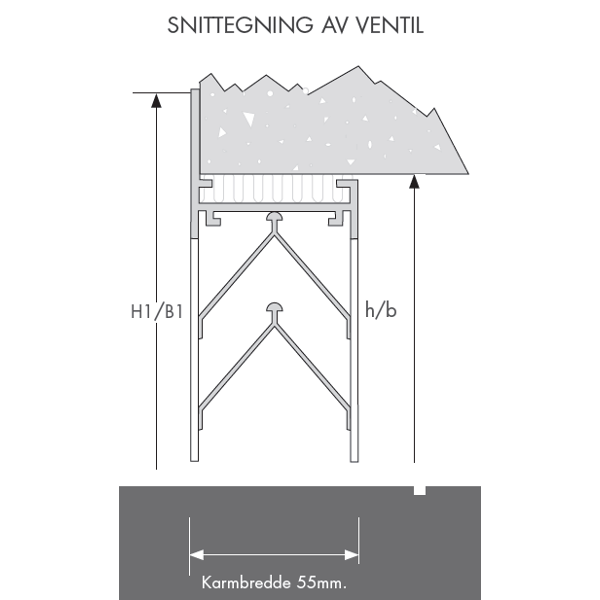 Ventilprofilene er innstikksikre, og sørger for god luftgjennomstrømning. Ventilene leveres med karm med utvendig gerikt, og festes fra innsiden med inkluderte braketter.